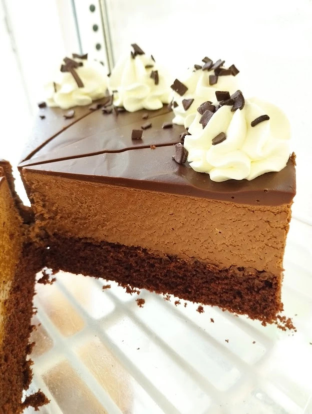 Složení: pšeničná mouka, vejce, cukr, máslo, smetana ke šlehání, kakao, rostlinný olej, přírodní vanilkové aroma, kypřící prášek, hořká čokoláda 55%, mléčná čokoláda 34%, créme fraiche, čokoládové sypání, želatina